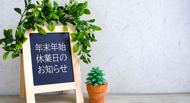 年内の営業は、12月26日(金)の午後5時までとなります。